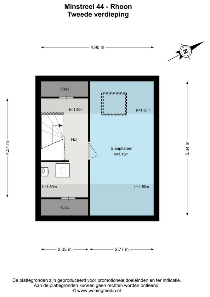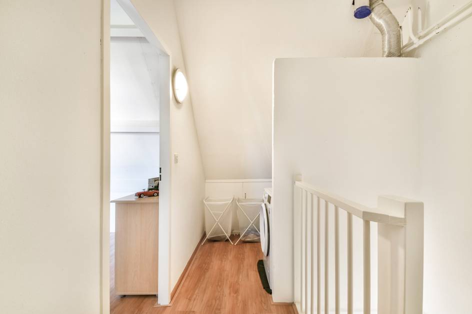 De tweede verdieping biedt een derde slaapkamer en is daarnaast voorzien van praktische inbouwkasten aan meerdere zijden. Tevens vindt u hier de aansluiting voor de wasmachine en de opstelplaats van de CV-ketel.