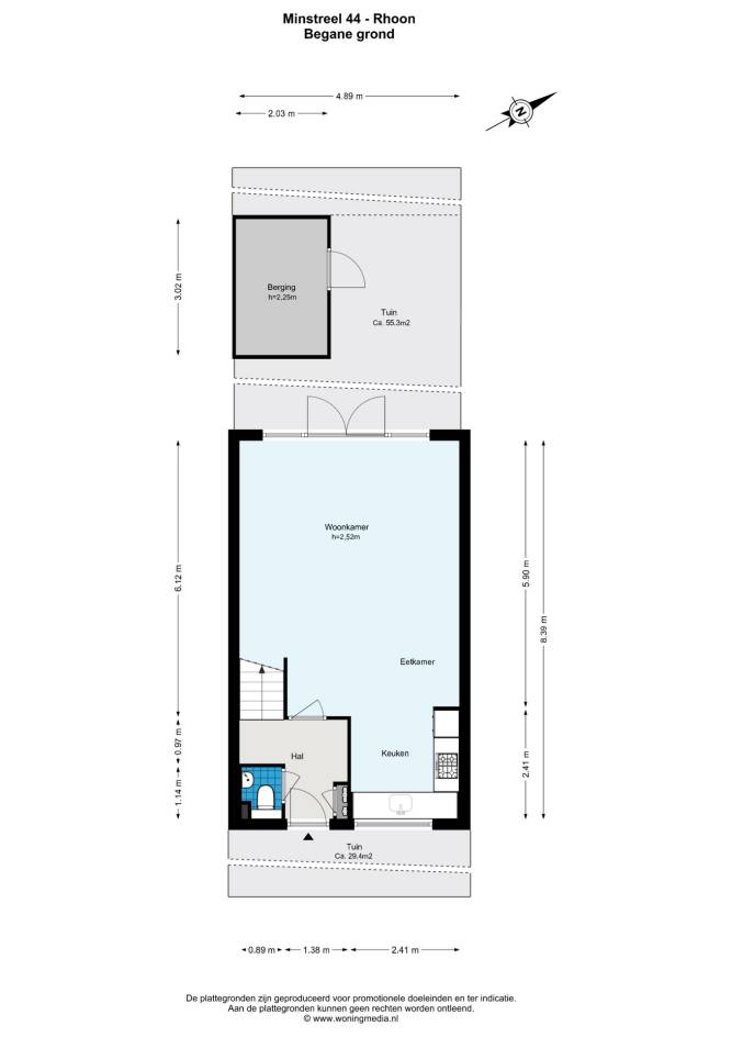 Via de voortuin, met de mogelijkheid om twee auto’s op eigen terrein te parkeren, bereikt u de entree van de woning. Aan de voorzijde is een markies aanwezig voor zonwering.