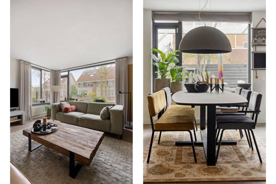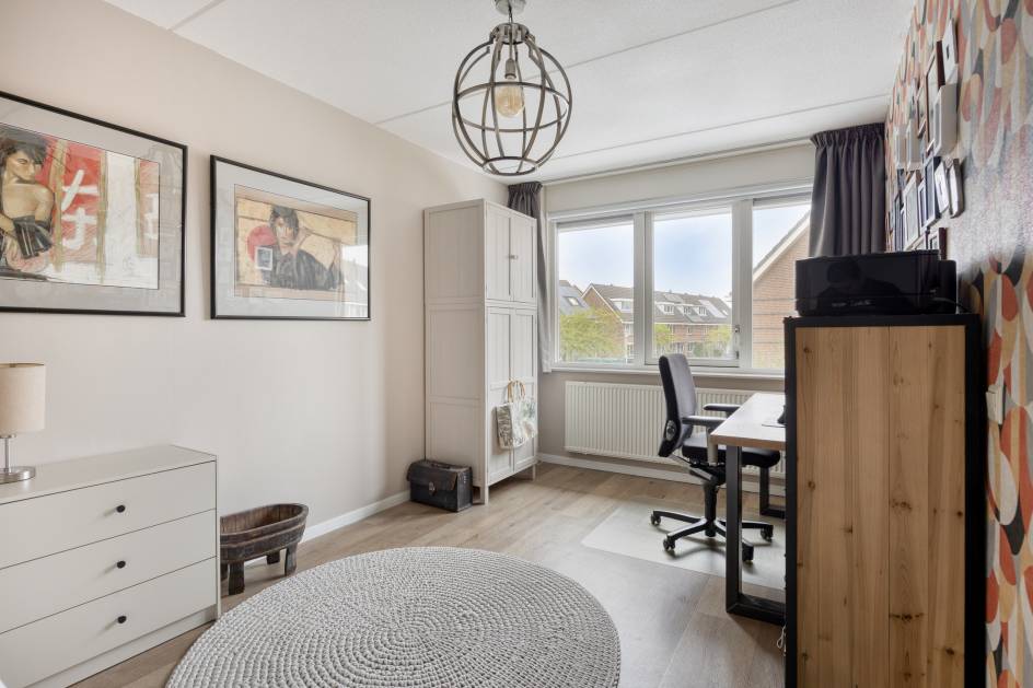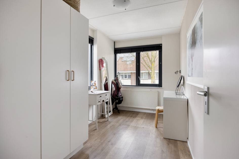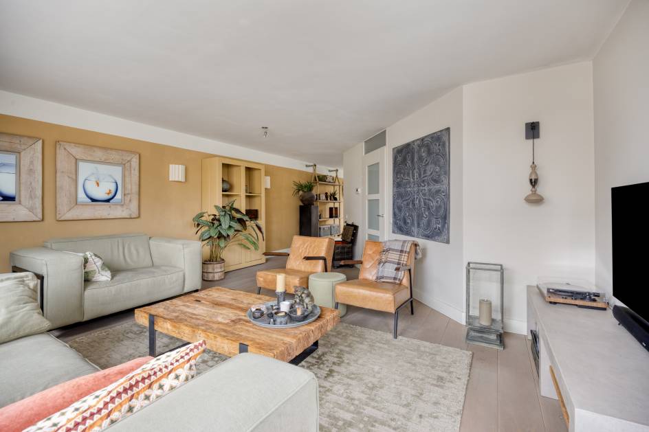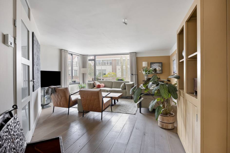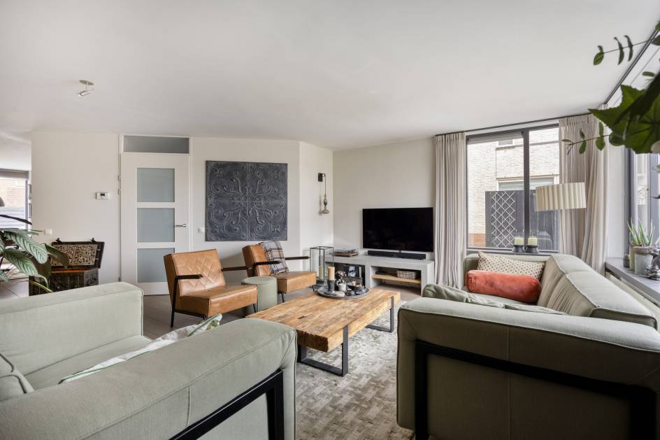 De ruime woonkamer is gelegen aan de voorzijde van de woning en geeft voldoende ruimte voor een riante zithoek. Door het grote hoekraam heeft de kamer veel lichtinval.