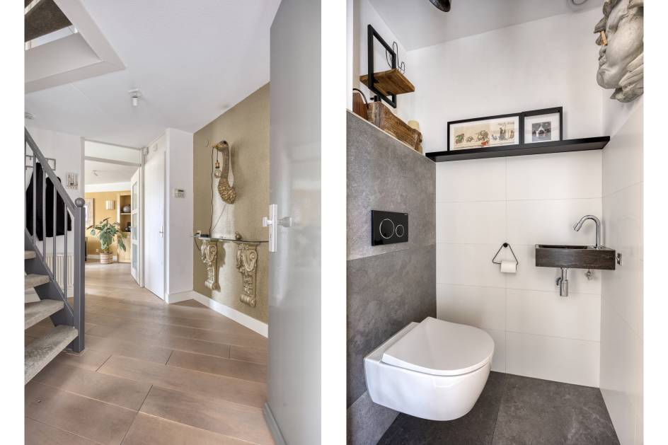 De gehele begane grond is voorzien van een houten vloer. Ook is er een vloerverwarming installatie aanwezig. Deze is nu niet in gebruik i.v.m. de houten vloer.