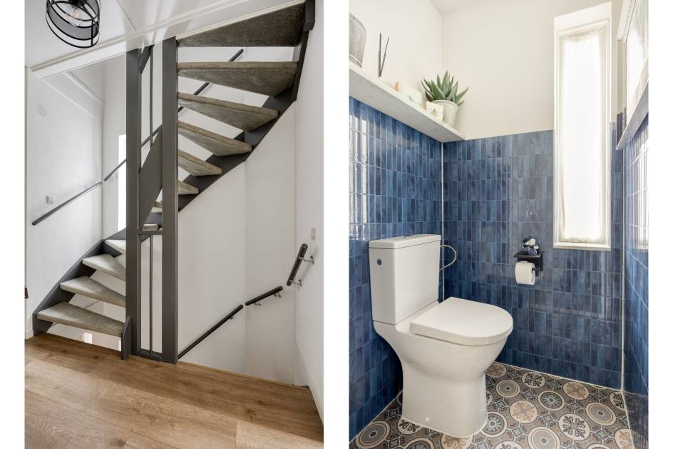 Het separate toilet op de overloop is volledig betegeld.