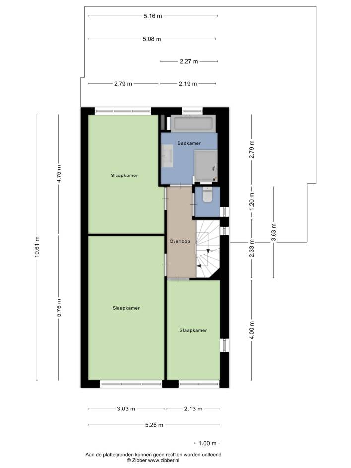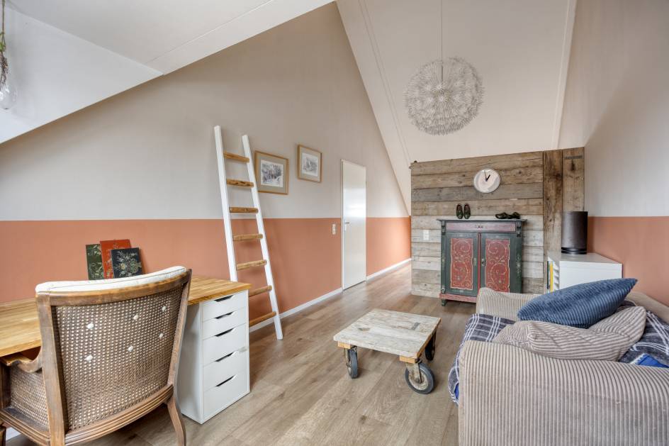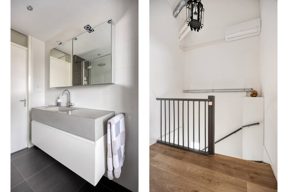 Overloop, 1 grote slaapkamer, kantoorruimte, wasruimte.