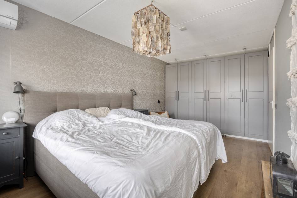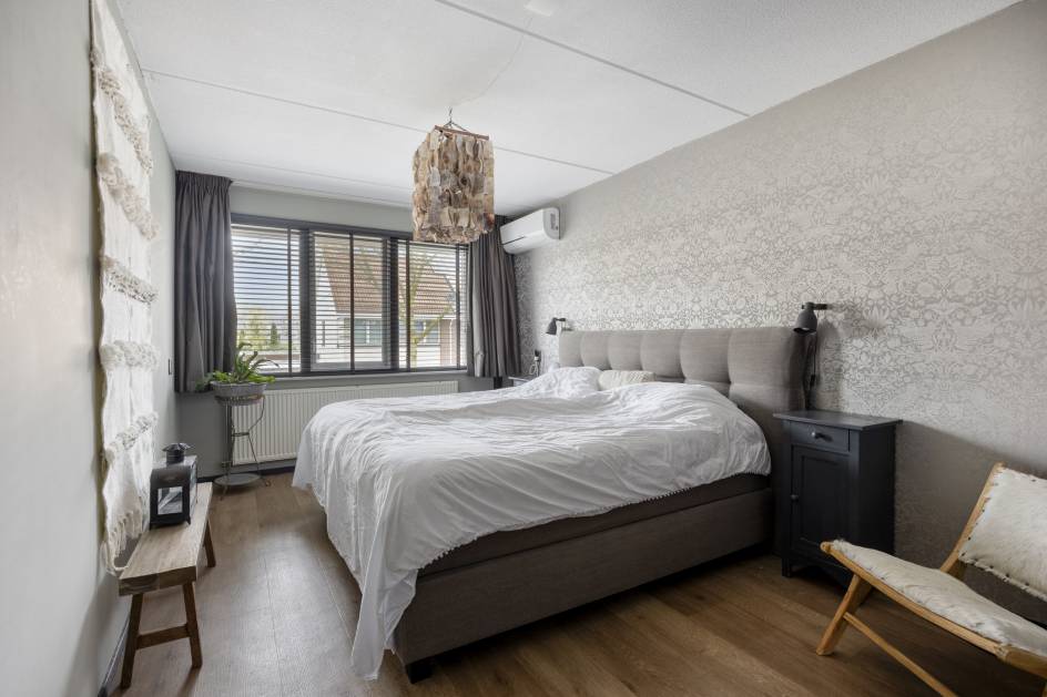 Overloop, 3 slaapkamers, badkamer en separaat toilet. Aan de voorzijde van de woning bevindt zich de ruime masterbedroom voorzien van airconditioning. Aan de voorzijde bevindt zich tevens de 2e slaapkamer. De 3e slaapkamer is gelegen aan de achterzijde van de woning.
