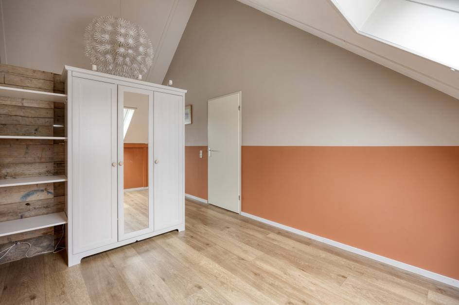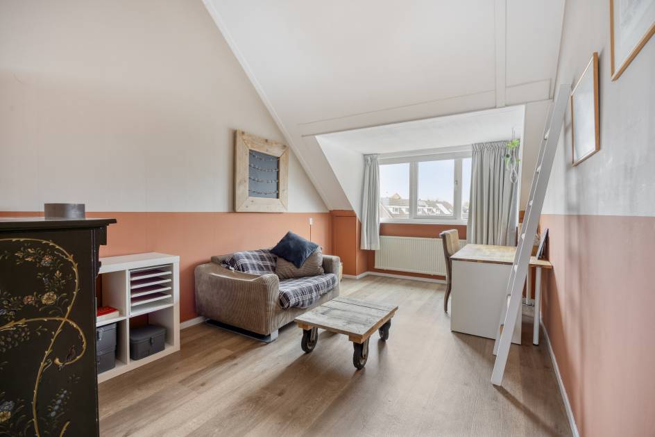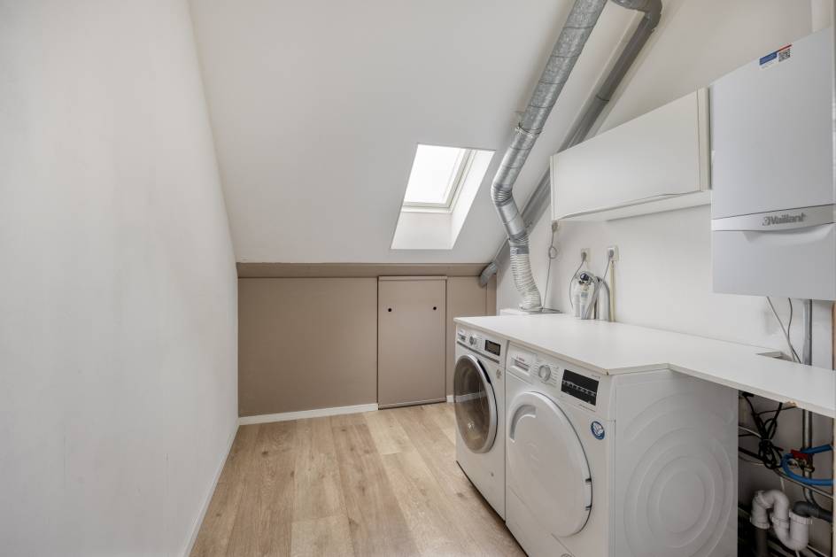 De 2e verdieping biedt nog veel mogelijkheden qua indeling. De ruimte is nu ingedeeld met een grote slaapkamer met airconditioning met aan de voorzijde een groot (Velux)dakraam en aan de achterzijde een grote dakkapel. De ruimte zou eenvoudige ingedeeld kunnen worden in 2 ruime slaapkamers. Via de overloop heeft u toegang tot wasruimte met klein dakraam en cv-ketelopstelling (Vaillant/ 2014). Aan de voorzijde bevindt zich een 3e kamer met groot dakraam. Deze kamer zou voor veel verschillende doeleinden gebruikt kunnen worden denk aan een kantoortje, inloopkast of speelkamer.