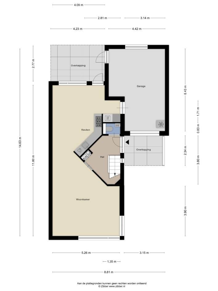 Via de keuken heeft u toegang tot de achtertuin en tot de garage.