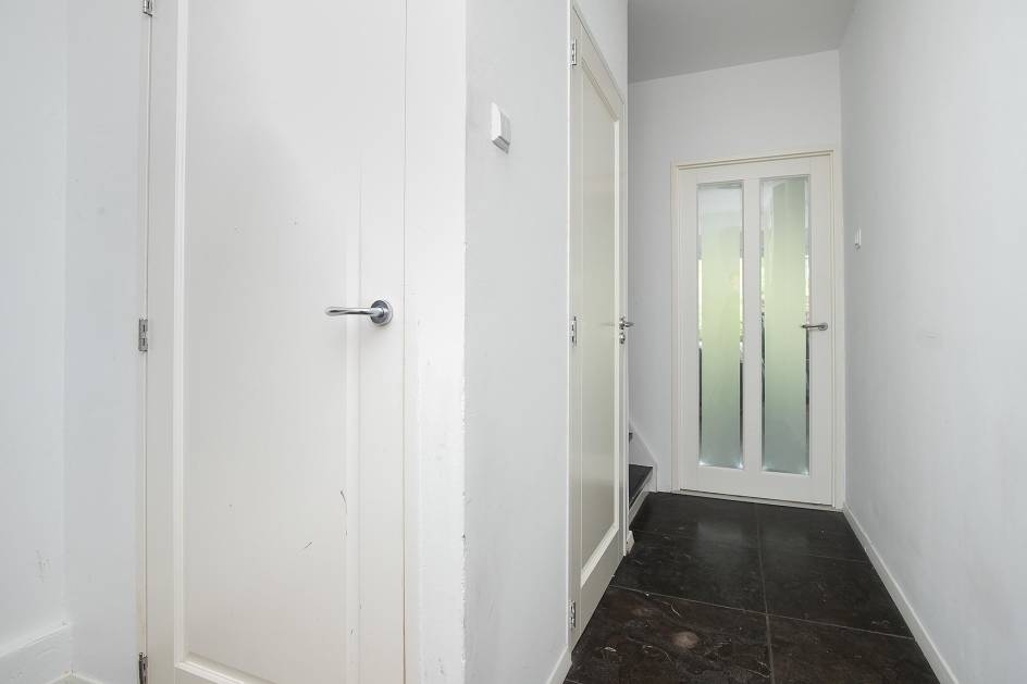 BEGANE GROND: ntree, hal met meterkast, toilet en toegang tot de woonkamer.