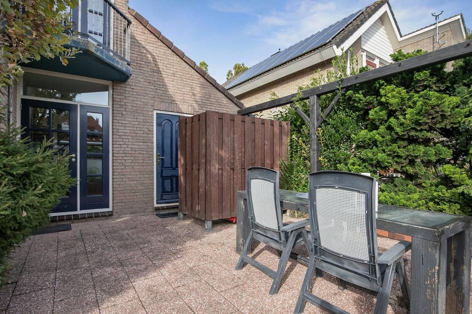 Op de grote oprit aan de voorzijde is parkeerruimte voor 2 auto’s en heeft u toegang tot de garage. De achtertuin is gelegen op het oosten en is grotendeels voorzien van bestrating en gras.