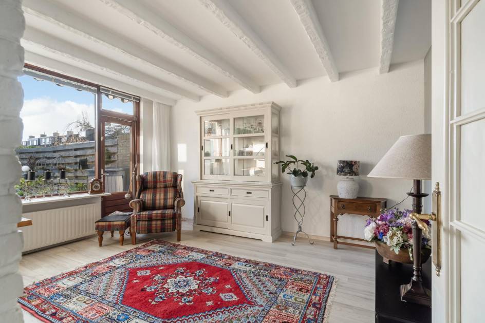 De woonkamer heeft grote ramen aan zowel de voor- als achterzijde, waardoor u geniet van veel daglicht. Aan de achterzijde bevindt zich de ruime keuken, die direct toegang biedt tot de achtertuin. Zowel de keuken als de woonkamer hebben een open karakter en bieden voldoende ruimte voor een comfortabele zit- en eethoek. De sfeervolle open haard maakt de woonkamer helemaal af.