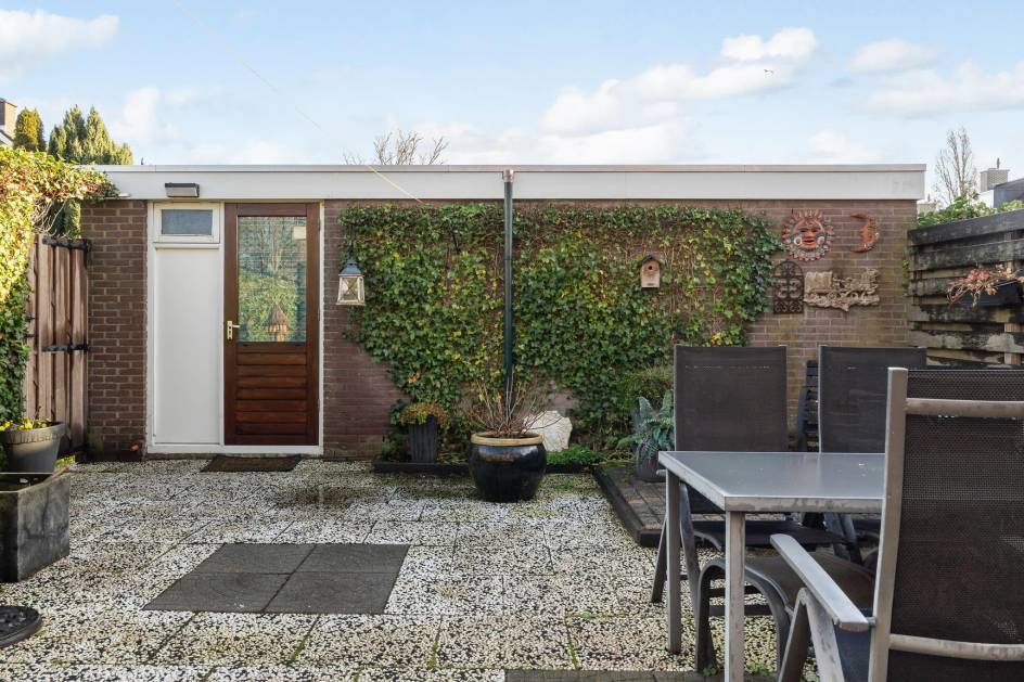 De woning is gelegen in een kindvriendelijke wijk met volop speelgelegenheden. De voortuin is voorzien van bestrating en groen. De achtertuin op het oosten is ingericht met bestrating en groenborders en beschikt over een zonnescherm aan de achtergevel.