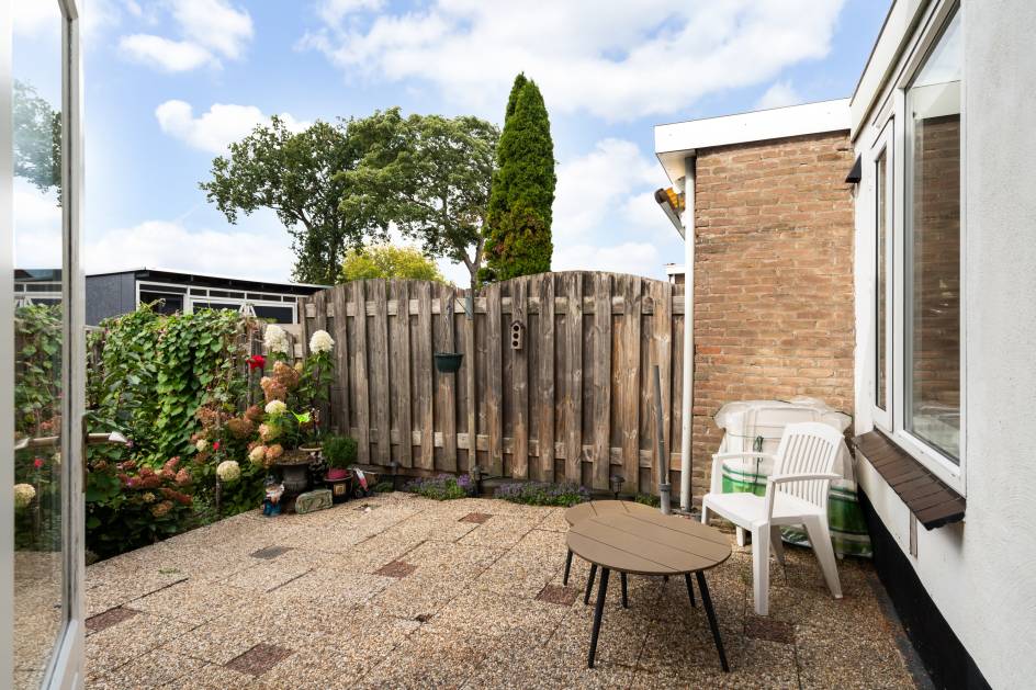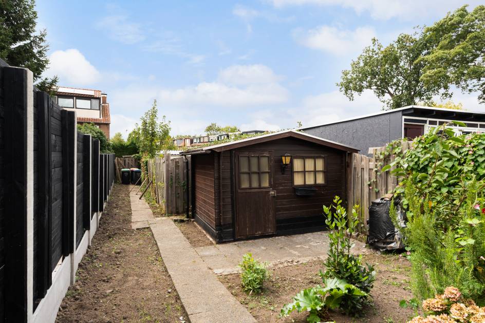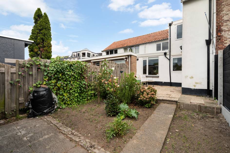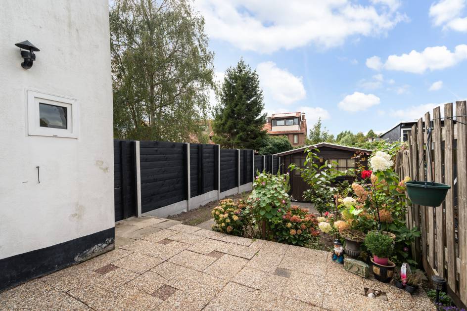 Vliering: De woning beschikt over een ruime achtertuin met veel mogelijkheden. Achter in de tuin bevindt zich een houten schuur en er is een praktische achterom aanwezig.