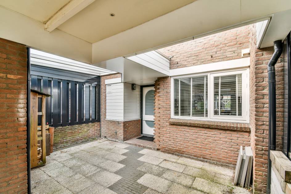 Buiten: Ligging in rustige woonwijk. Carport met eigen parkeerplek en toegang tot de berging aan de voorzijde. Sfeervol aangelegde achtertuin op het westen met diverse groenborders, een groot terras aan het huis en overkapping aan de achterzijde van de tuin.