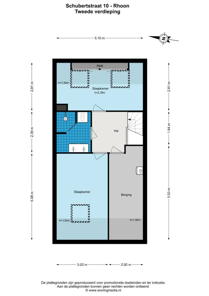 2e verdieping: Overloop, 2 slaapkamers, 2e badkamer en berging. Aan de voor- en achterzijde 2 grote slaapkamers met Velux dakramen. Grote berging met veel opbergruimte en cv-ketel. De 2e badkamer is modern afgewerkt en voorzien van een wastafelmeubel met dubbele kranen, inloopdouche met hand- en regendouche, design radiator en de wasmachine opstelling. De 2e verdieping is voorzien van een laminaatvloer.