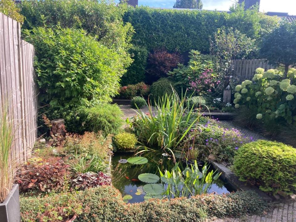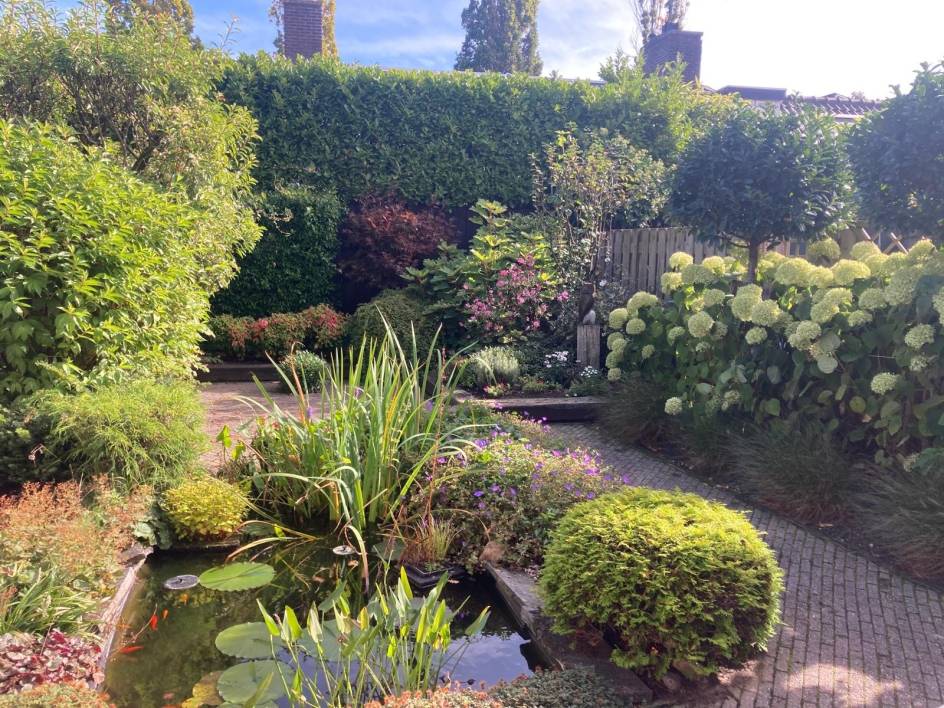 - Zonnige tuin op het oosten met vijver;