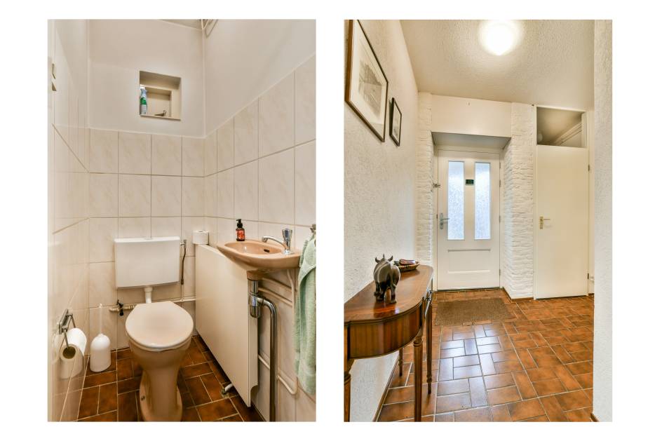 Via de oprit met carport bereikt u de entree van de woning. In de hal bevinden zich de meterkast en het toilet. De ruime woonkamer biedt voldoende plek voor een royale zit- en eethoek, beschikt over een sfeervolle open haard en openslaande deuren naar de tuin. De keuken bevindt zich aan de voorzijde van de woning. Deze verzorgde Tielemann-keuken is uitgerust met diverse inbouwapparatuur, waaronder een inductiekookplaat, afzuigkap, magnetron, heteluchtoven en koel-vriescombinatie.