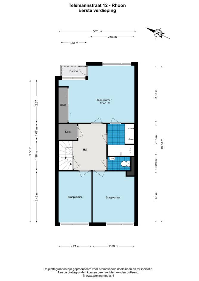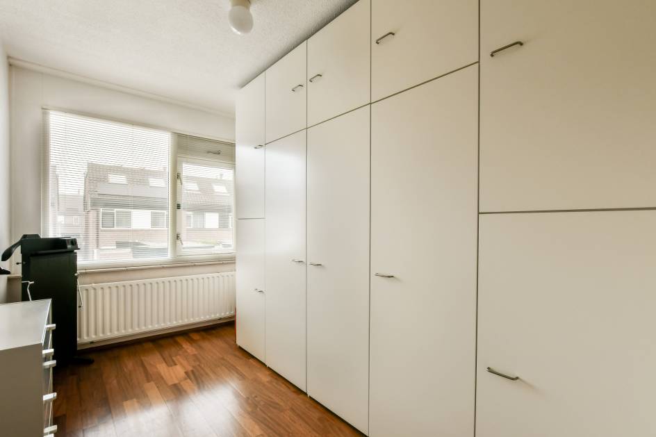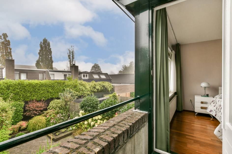 Overloop met apart toilet. Op deze verdieping bevinden zich drie slaapkamers, waaronder de master bedroom aan de achterzijde. Deze kamer beschikt over een klein balkon en directe toegang tot de badkamer. De badkamer is tevens via de overloop bereikbaar en voorzien van een ligbad, dubbele wastafel en een nette afwerking.