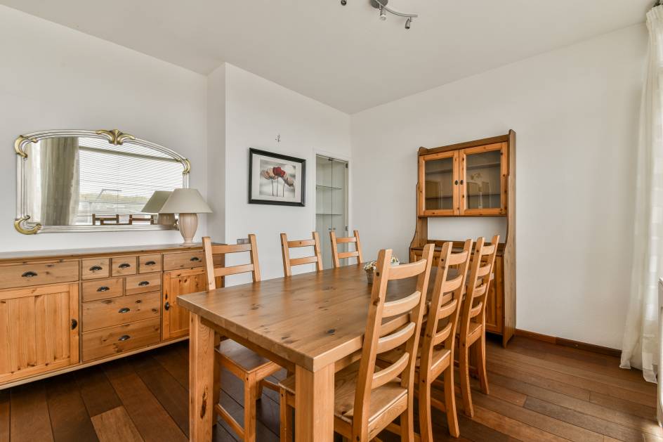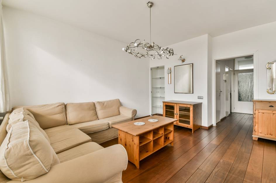 Woonkamer: De ruime woonkamer kenmerkt zich door veel lichtinval en een prettig uitzicht. De Jatoba hardhouten vloer geeft de ruimte een warme uitstraling. Vanuit de woonkamer is tevens toegang tot het balkon.
