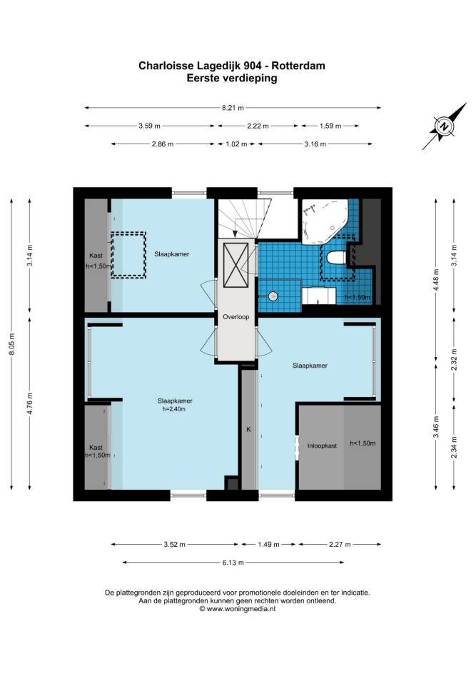 -3 slaapkamers met vaste kasten, waarvan 1 met inloopkast