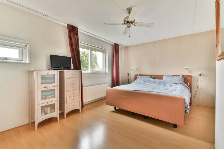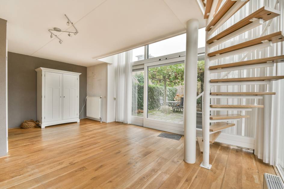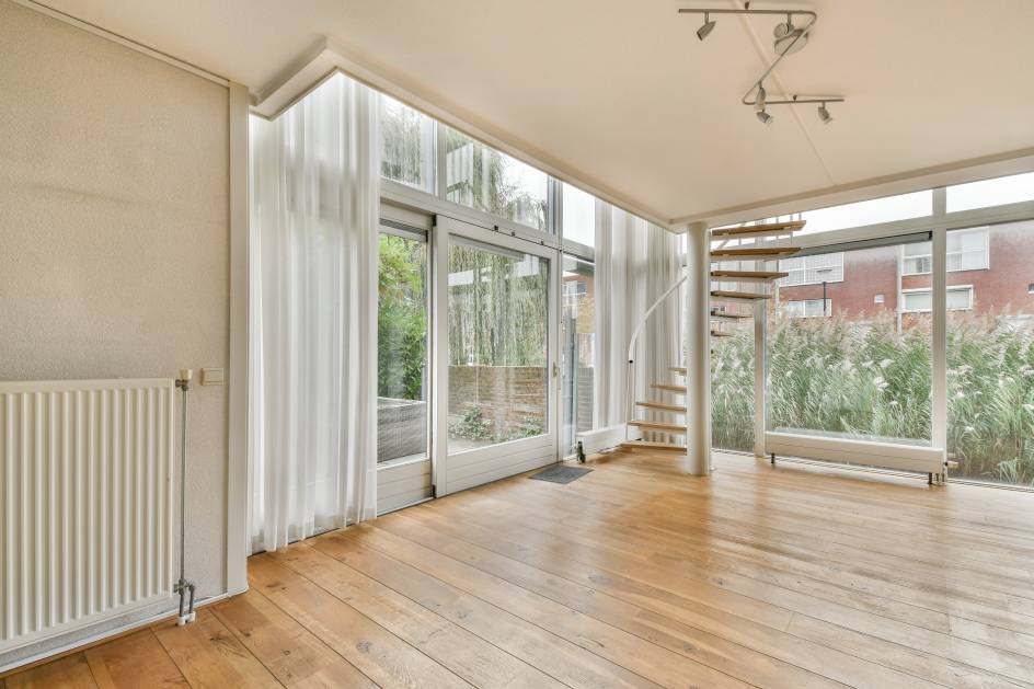 De tuinkamer is een heerlijke lichte ruimte dankzij de grote schuifpui en raampartij in de zijgevel. Deze ruimte kan voor verschillende doeleinden worden gebruikt. Denk aan een werkkamer, speelkamer, 2e woonkamer of zelfs als een slaapkamer op de begane grond. De achtergevel is voorzien van een elektrisch zonnescherm en de kamer beschikt over een bergruimte met cv-installatie (2020) en mechanische ventilatie, evenals een wenteltrap naar de eerste verdieping.