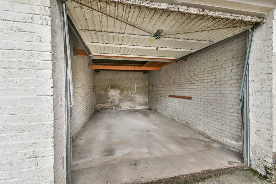 De garage is voorzien van een handmatige kanteldeur en is niet aangesloten op elektra of verwarming.