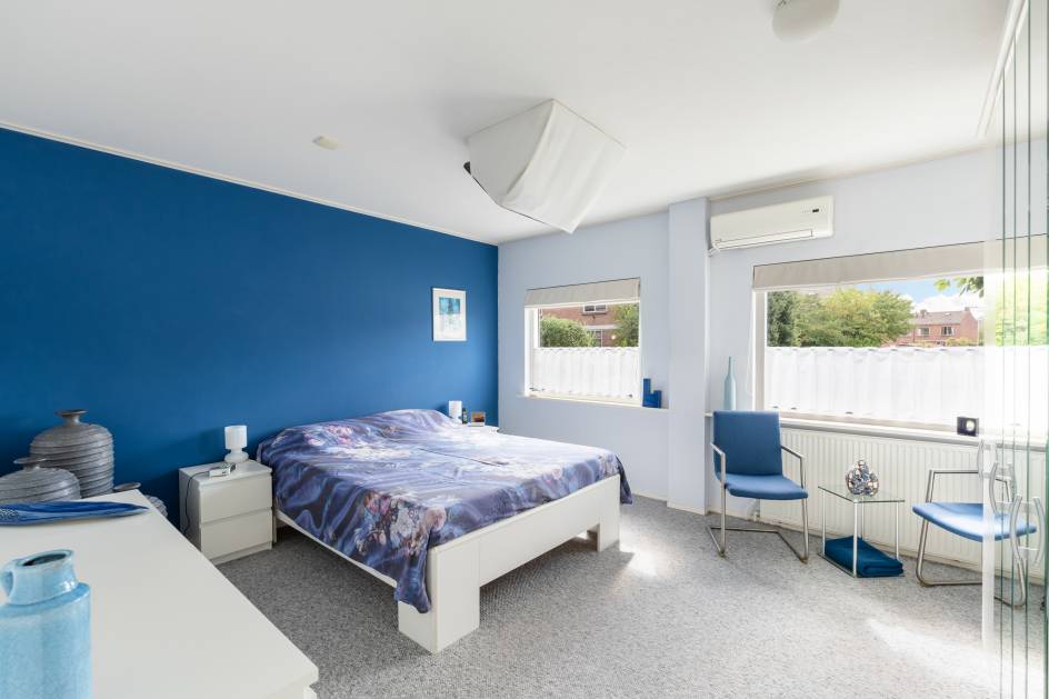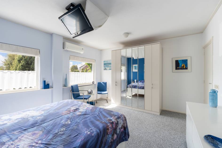 De woning beschikt over drie slaapkamers. Aan de rechterzijde van de woning bevinden zich de master bedroom (met airconditioning) en de tweede slaapkamer.