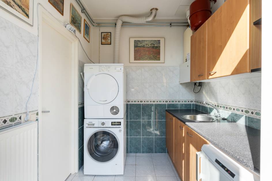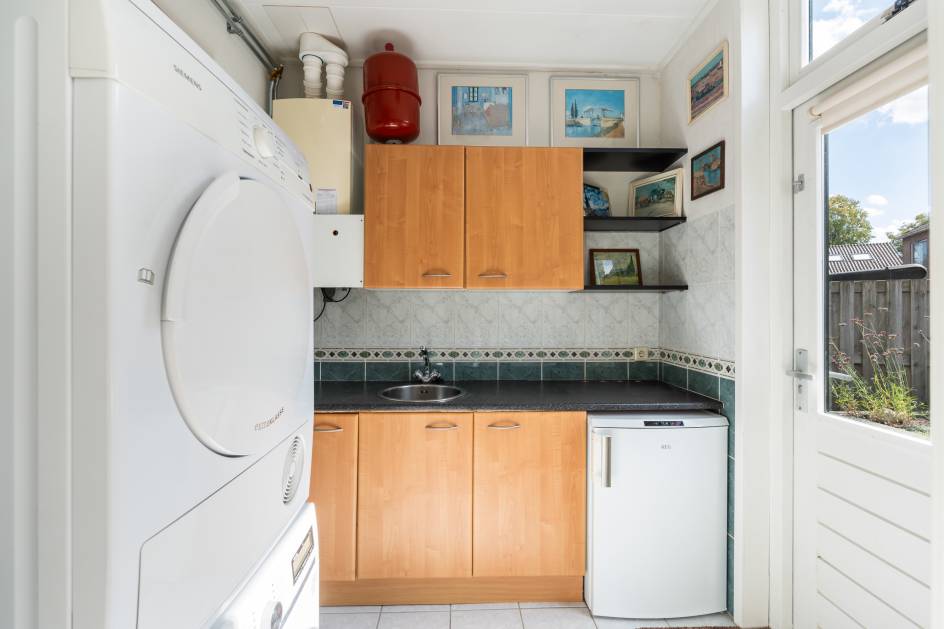 De derde slaapkamer bevindt zich aan de achterzijde, met uitzicht op de tuin. Aangrenzend is er een wasruimte met keukenblok, gootsteen, Remeha CV-combiketel (2012), was-/droogaansluitingen en toegang tot de tuin.