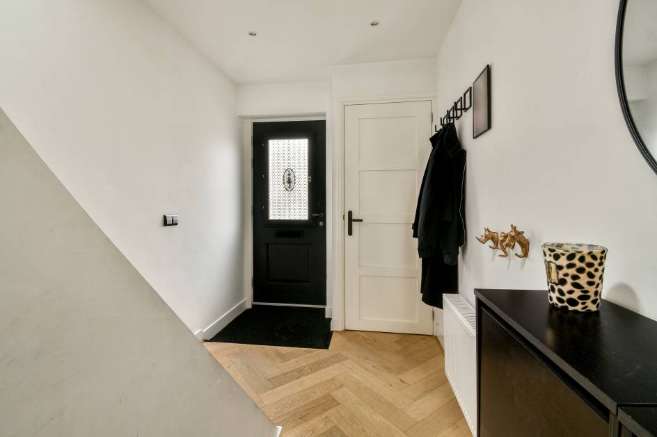 Begane grond: Via de entree bereikt u de hal met meterkast en trapopgang. De gehele begane grond is voorzien van een fraaie eikenhouten vloer (2019), wat direct zorgt voor een warme en moderne uitstraling.