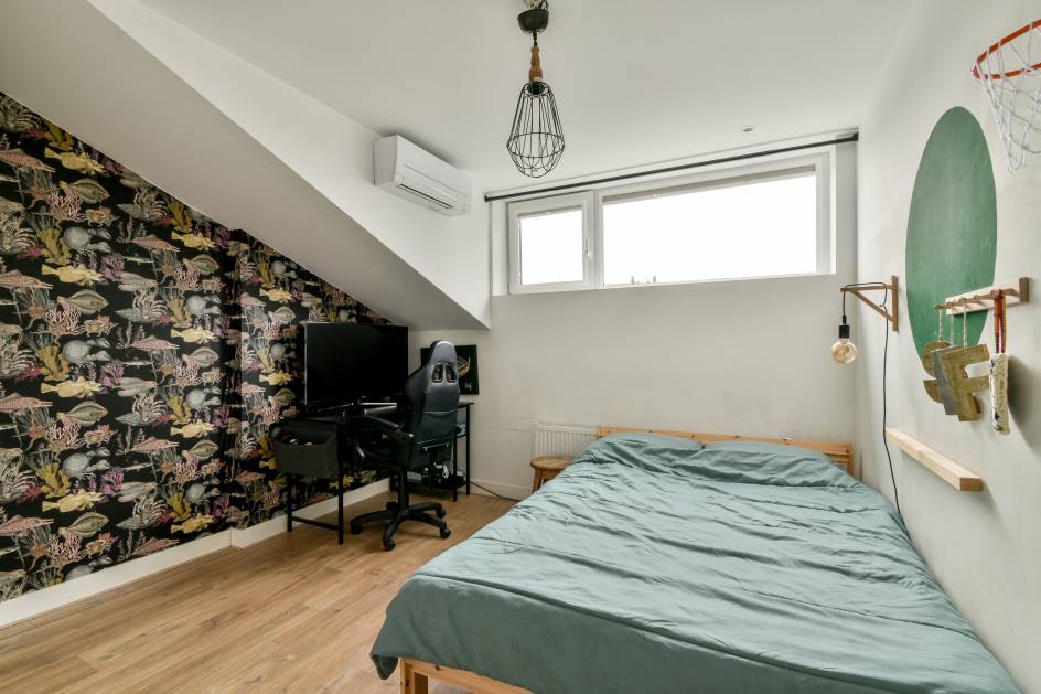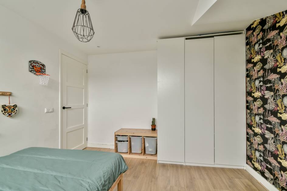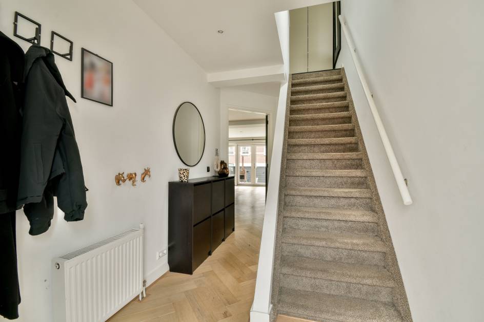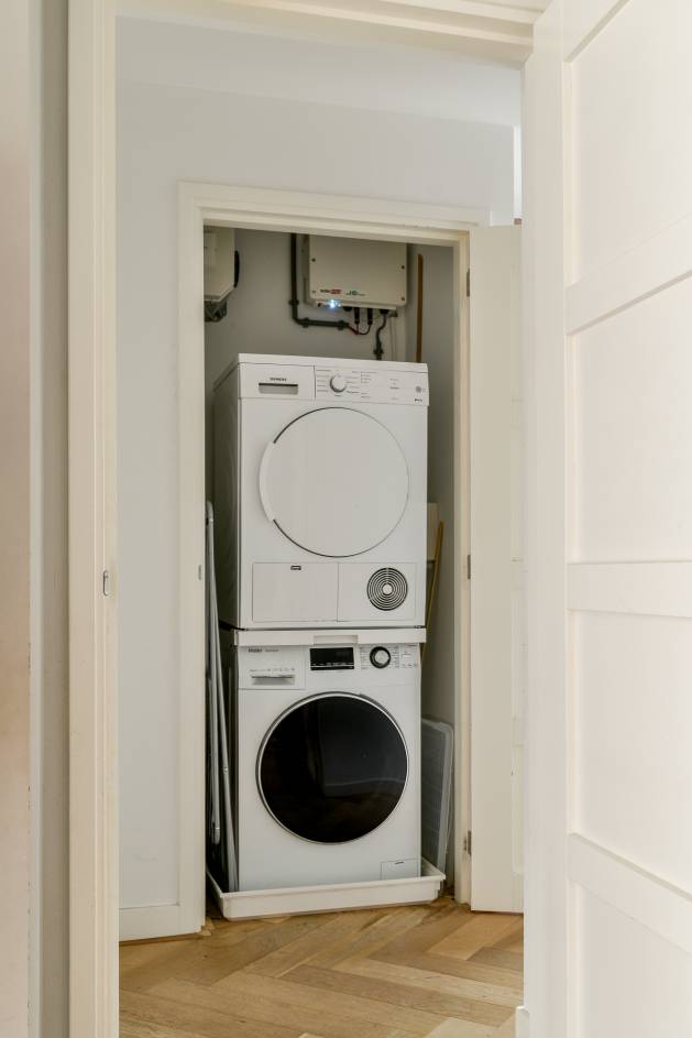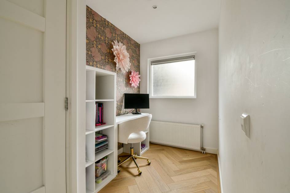 Via de woonkamer betreedt u de praktische kantoorruimte, ideaal voor thuiswerken of als hobbykamer. Verder vindt u op de begane grond een modern toilet en een wasruimte met de CV-opstelling (Remeha, 2019), de omvormer voor de zonnepanelen en de mechanische ventilatie. Extra opslagruimte is beschikbaar in de ruime trapkast.