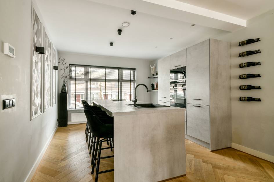De luxe keuken (2019) is uitgerust met hoogwaardige Siemens inbouwapparatuur, waaronder een inductiekookplaat met geïntegreerde afzuiging, een koel-vriescombinatie, een oven en een magnetron. Er is daarnaast veel bergruimte aanwezig. De gehele benedenverdieping is voorzien van HR++ glas.