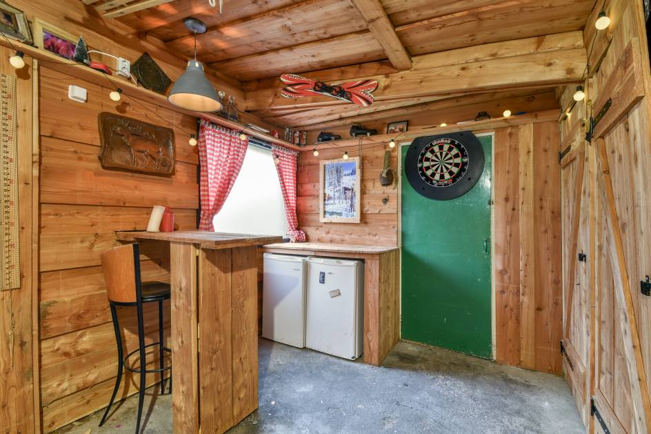 • Fraai aangelegde tuin met overkapping en twee schuren (waarvan één ingericht als bar).