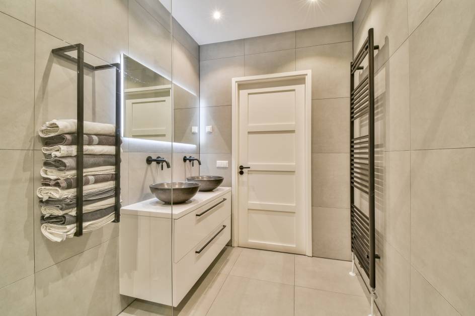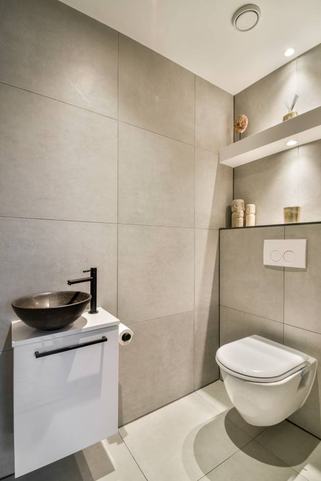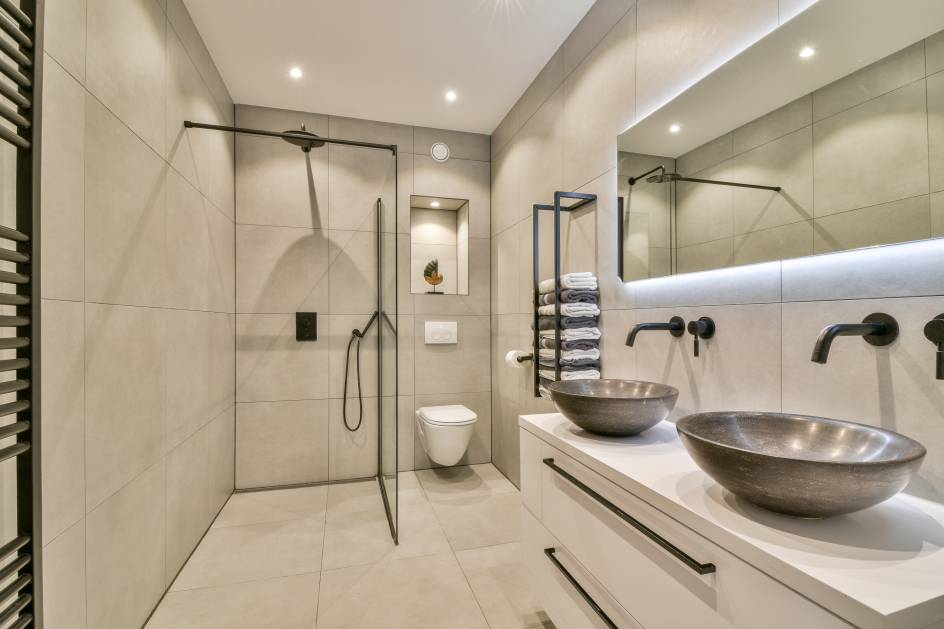 • Luxe badkamer met toilet, dubbele wastafel en inloopdouche;
