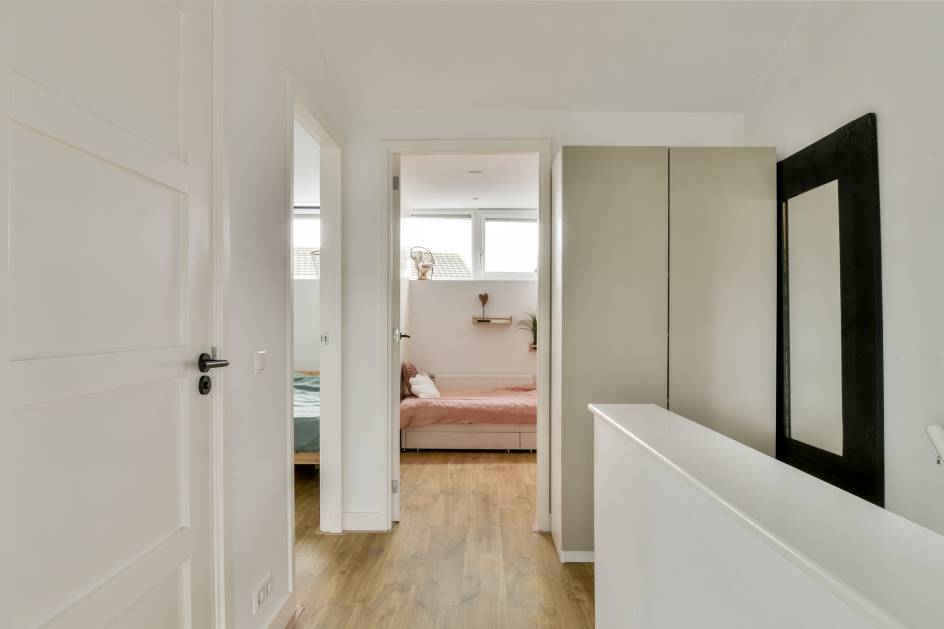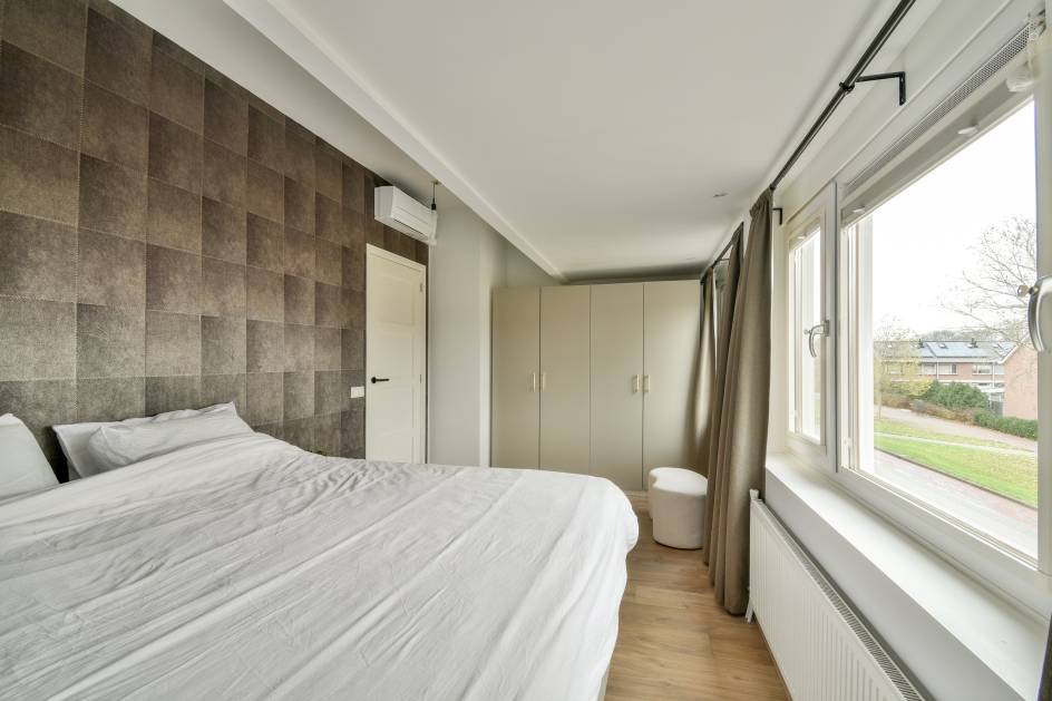 Op deze verdieping bevinden zich drie slaapkamers, waarvan de grootste aan de voorzijde is gelegen. Alle slaapkamers zijn voorzien van onderhoudsarme kunststof kozijnen met HR+++ glas, op maat gemaakte zonneschermen, horren en airconditioning.