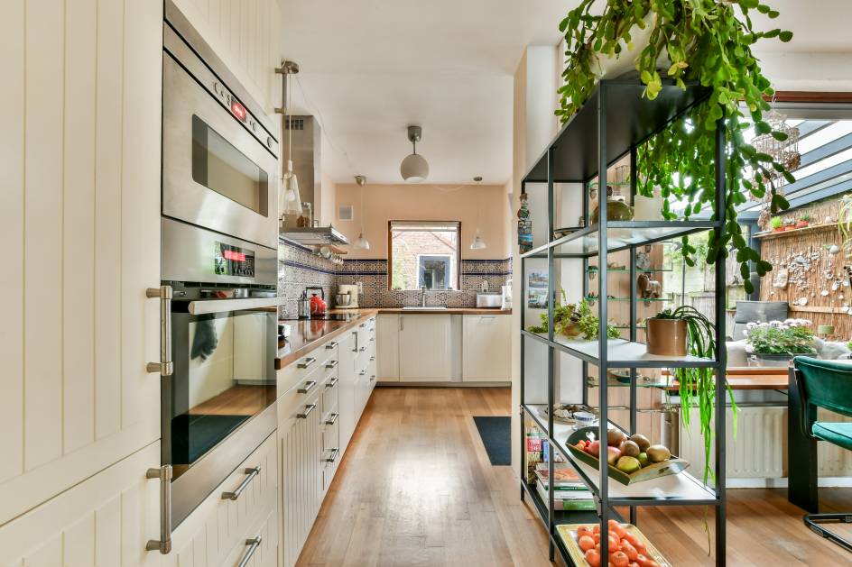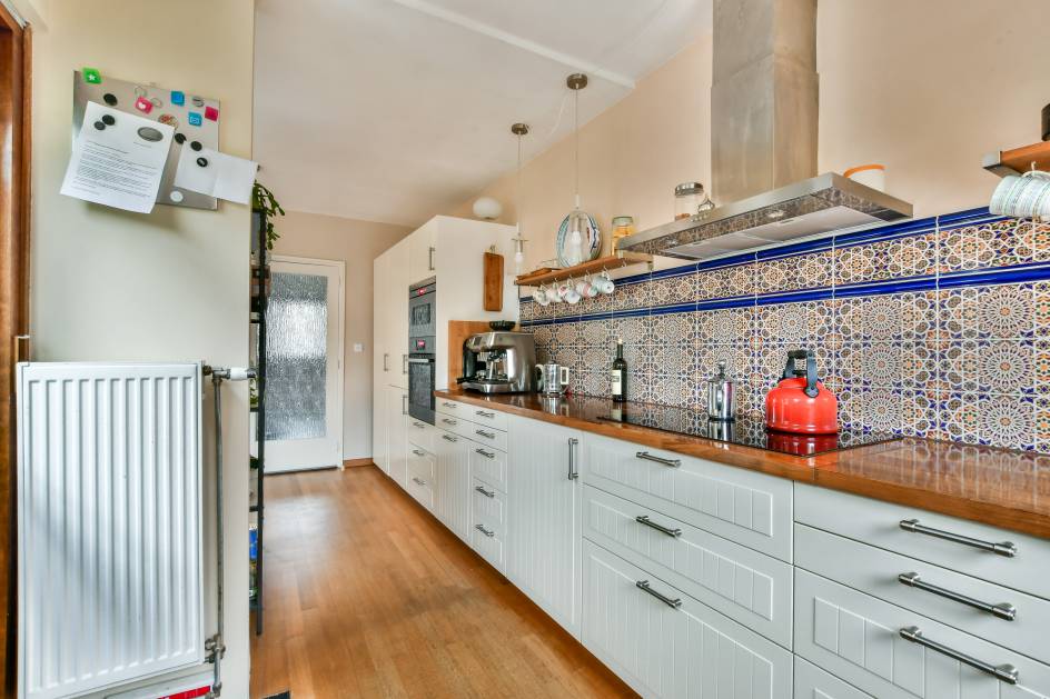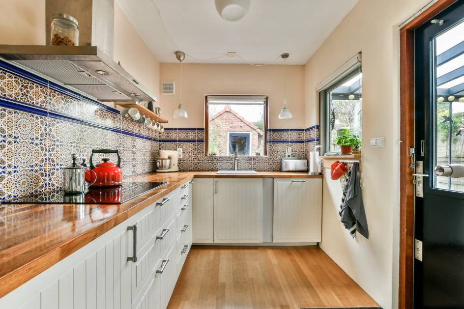 De keuken is uitgerust met diverse inbouwapparatuur, waaronder een koelkast/vriezer, inductiekookplaat, oven, magnetron, afzuigkap en een vaatwasser uit 2025. Vanuit de keuken heeft u toegang tot de achtertuin.
