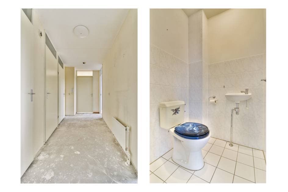 Via de entree bereikt u de hal, die toegang biedt tot alle vertrekken van de woning. In de hal bevinden zich de meterkast, het halfbetegelde toilet en een praktische berging met cv-installatie (Remeha), wasmachineaansluiting en mechanische ventilatie.