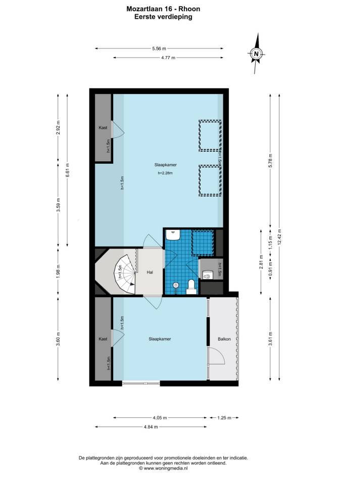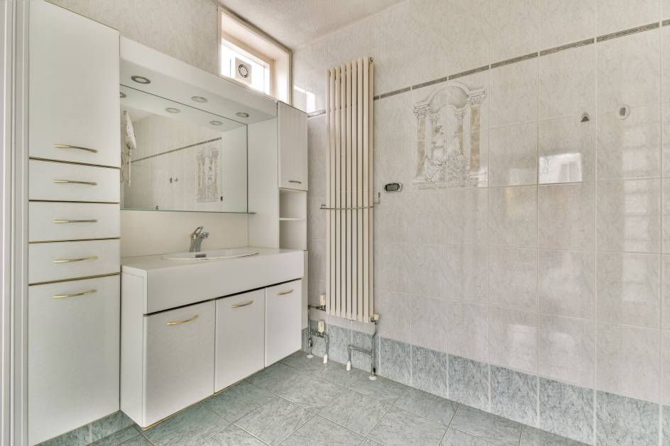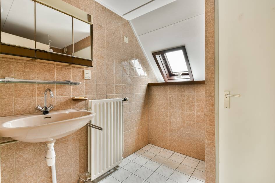 De badkamer op deze verdieping is uitgerust met een douche, wastafel en toilet. Tevens bevindt zich hier de aansluiting voor de wasmachine.