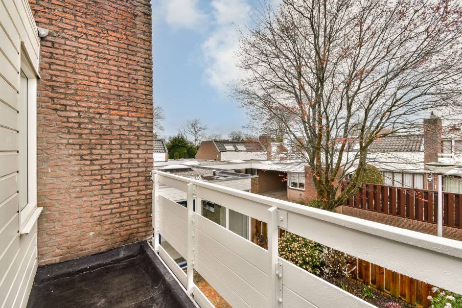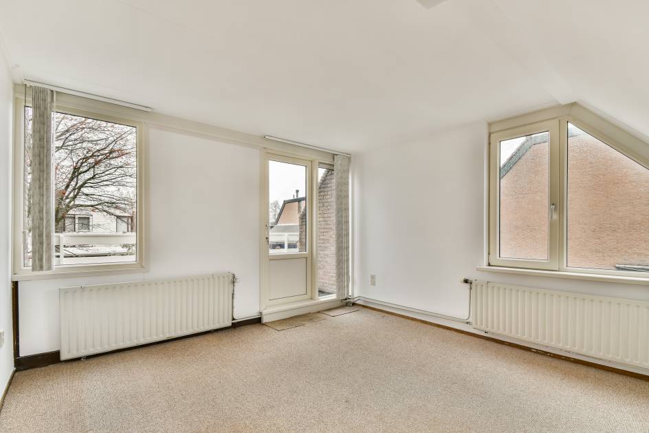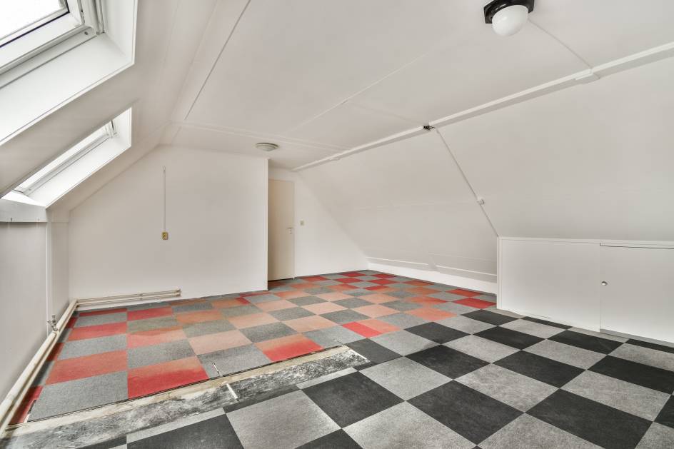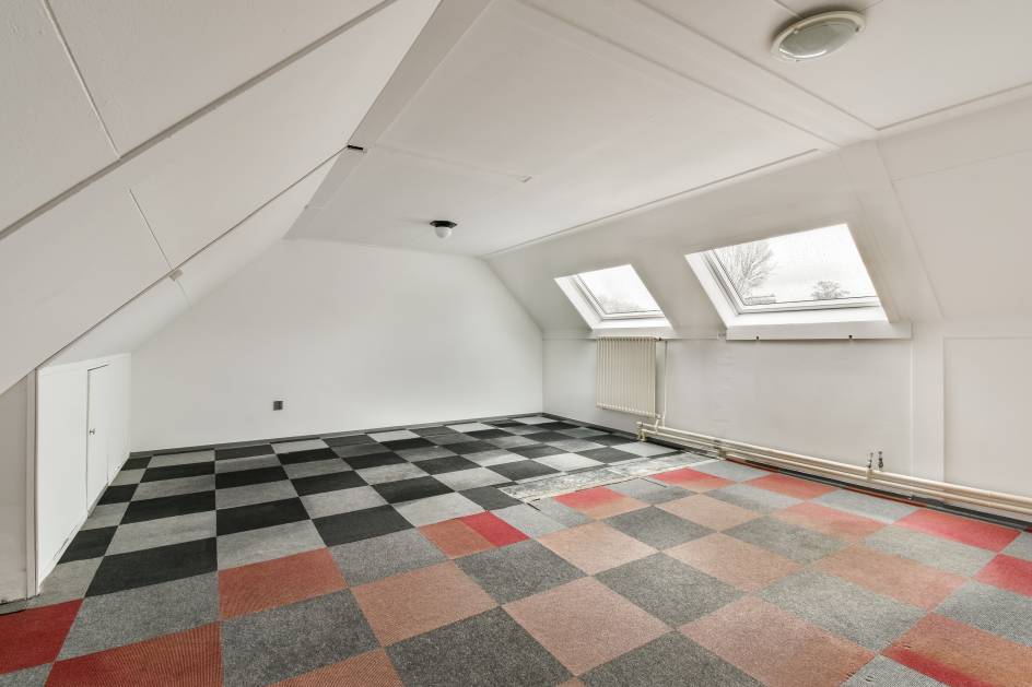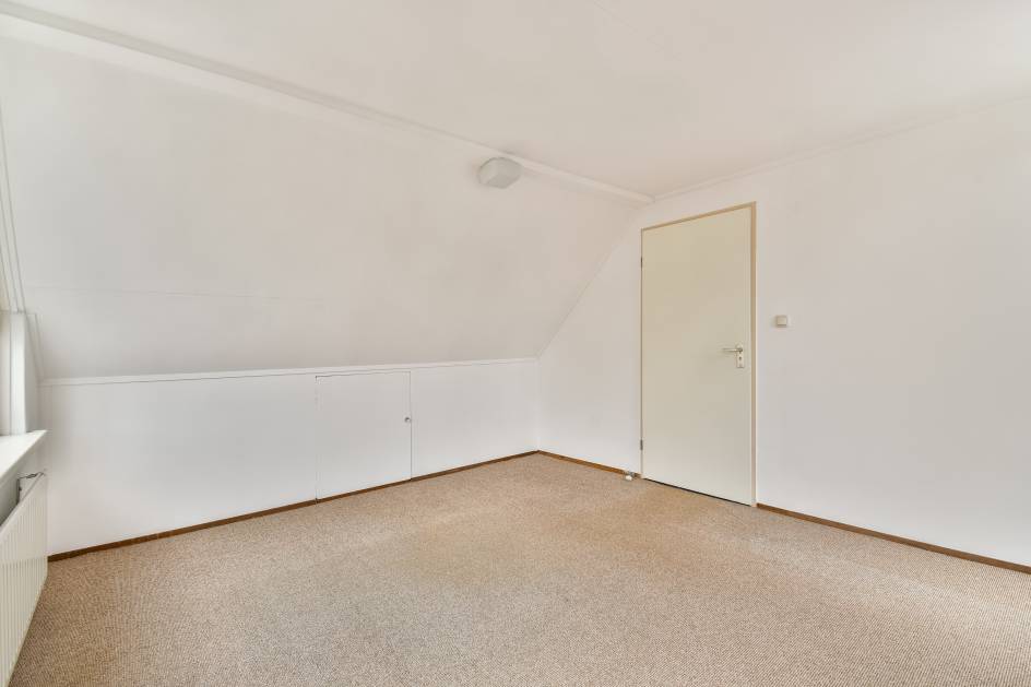 De derde slaapkamer is voorzien van schuine dakramen en eveneens een inbouwkast.